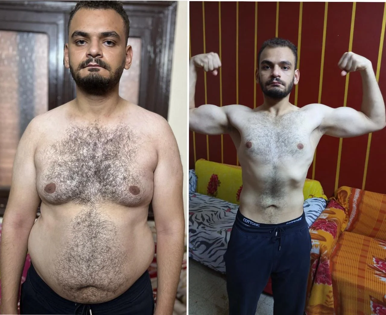 "استاذ بلال 34 سنة بيحب يبان ضخم مش بيحب التنشيف او مظهر العروق وكان بيعاني من مشاكل صحية بسيطة مثل ارتفاع الكولسترول ومقاومة الأنسولين والحمدلله قدرنا"