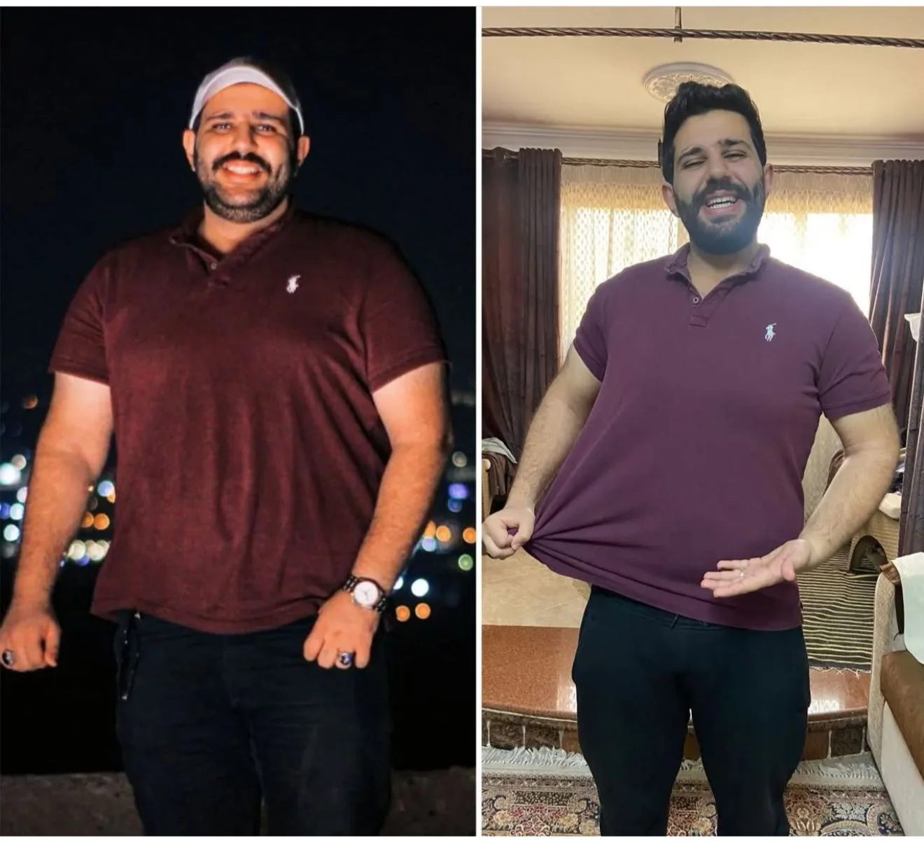 "استاذ كريم 37 سنة عمره ما فكر يمارس رياضة ولا يتبع نظام صحي لكن بسبب تأثر صحتة واصابتة ببعض الأمراض وبناء علي نصائح الدكاترة ليه بتغير نمط حياتة قرر يشترك معايا ودي كانت النتيجة"