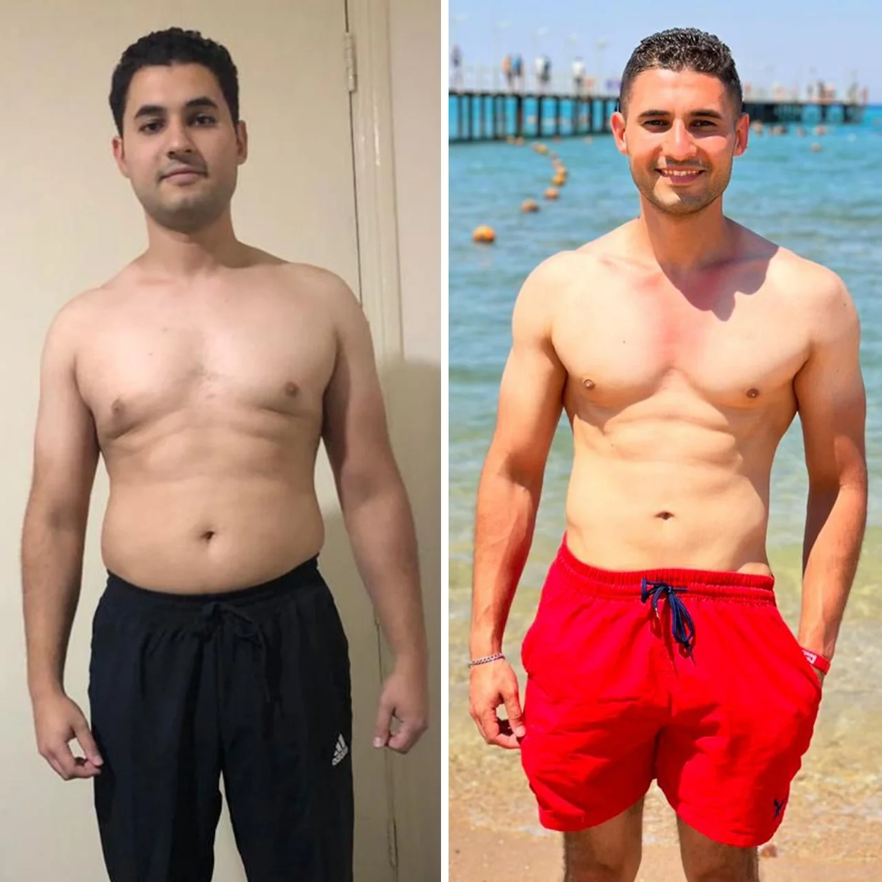 حازم اشترك معايا قبل بداية الصيف ب3 شهور كانت مشكلته انه عنده دهون زيادة في منطقة البطن والاجناب وكان بيحلم انه يطلع المصيف بأحسن شكل ممكن وكان تحدي بالنسبة ليا ان احنا نوصل للهدف بتاعه في خلال 3 شهور وكمان نكون عاملين جسم قوي مش مجرد ان احنا ننزل في الوزن وخلاص وبالفعل قدرنا في خلال 3 شهور عن طريق باقة Speed ان احنا :