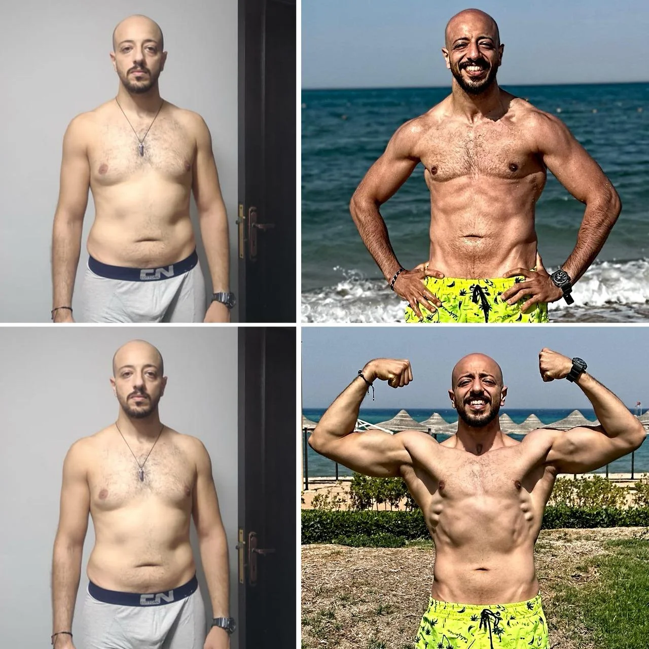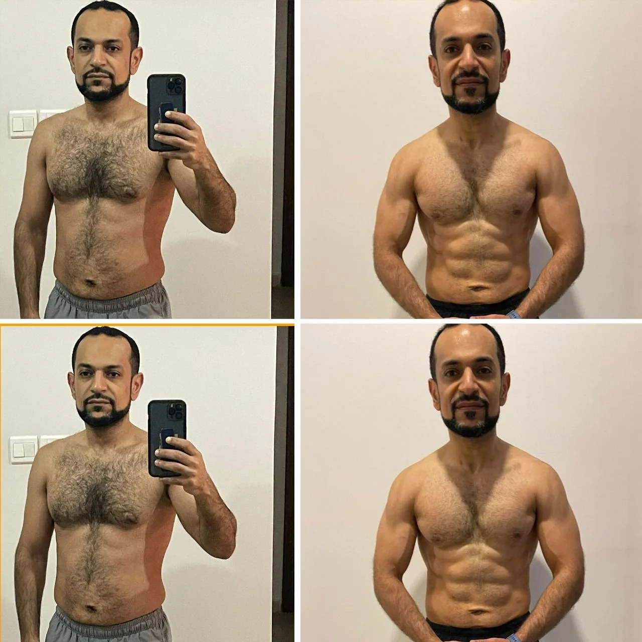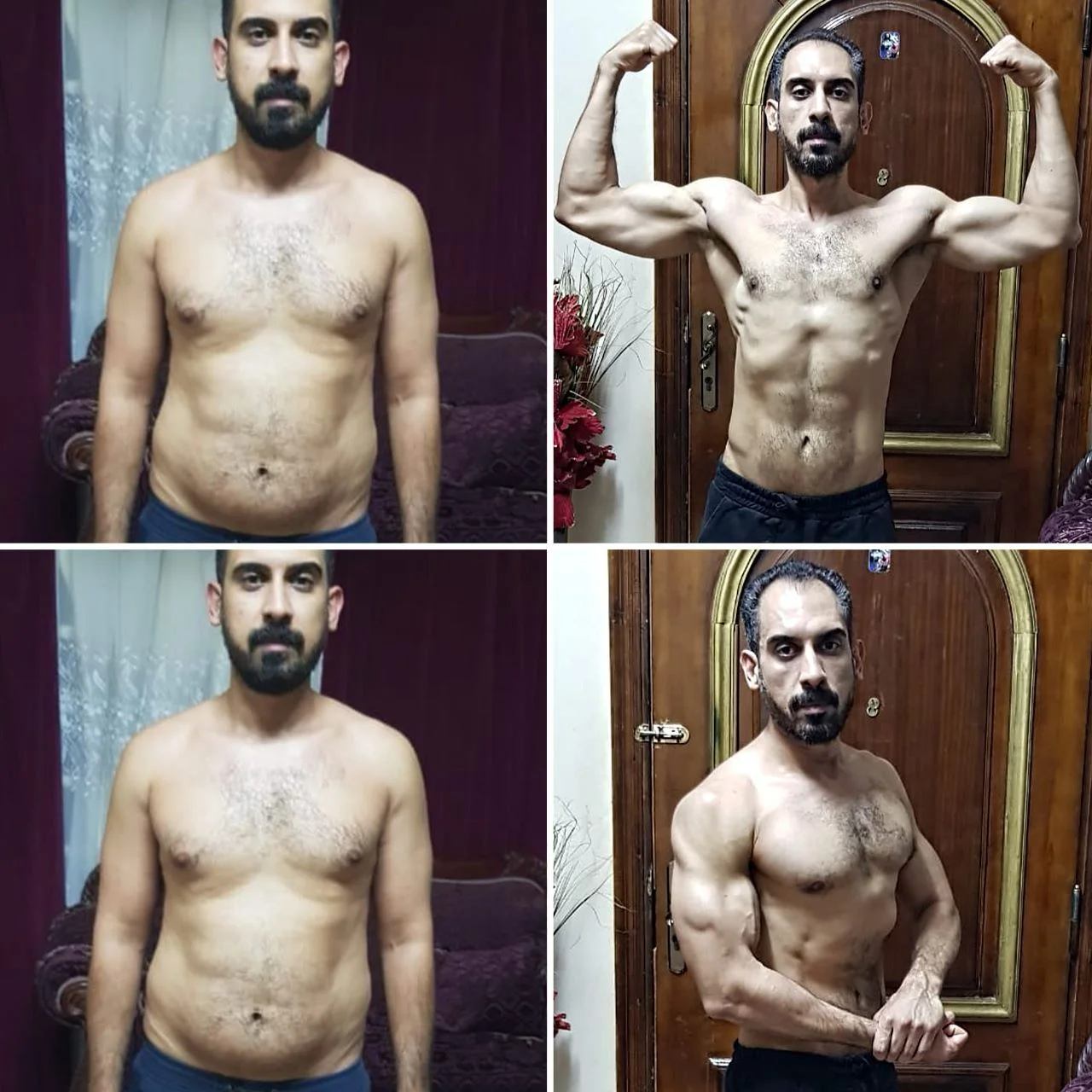 "Mr. Ahmed, 32 years old, had always dreamed of achieving a strong, athletic body but thought it was too late and that he had missed his chance over the years. After seeing others like him achieve their dreams, he decided to take the journey with me, and the result was:"